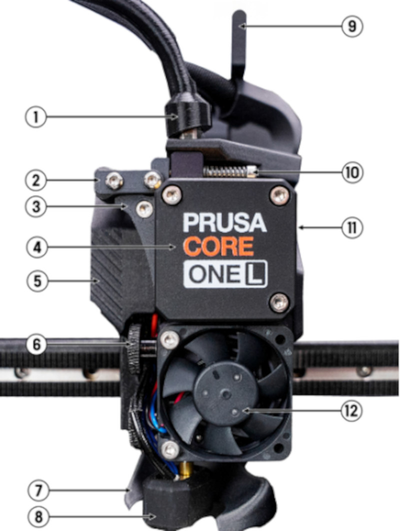 - Print Fan shroud: directs the air from the high-performance turbine print fan towards the printed object.